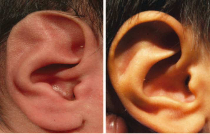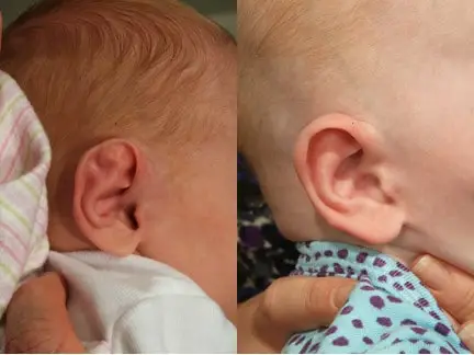 Poloha dítěte během těhotenství může ovlivnit tvar uší. - Smíšené vady: